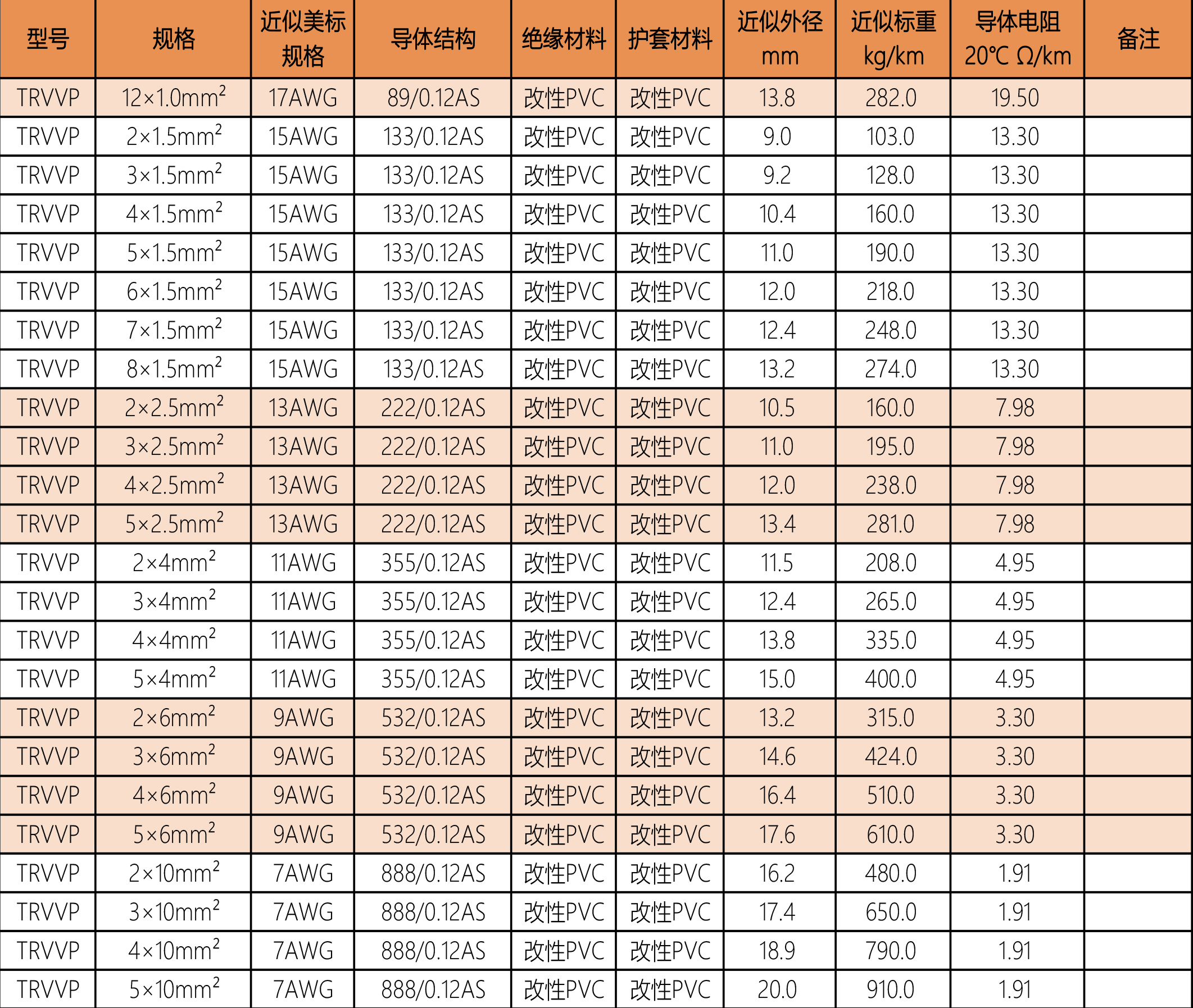 TRVV高柔性拖链电缆