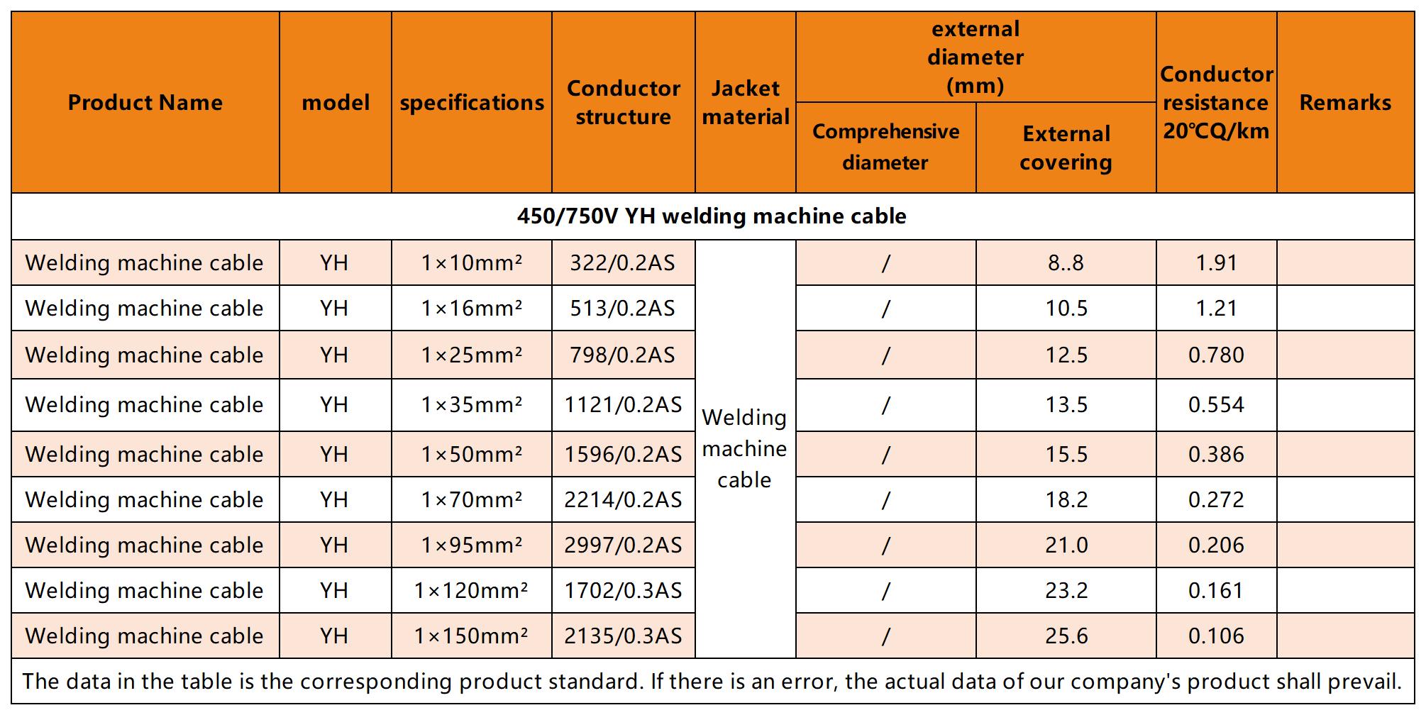 ◆ Reference standard: GB5013-97; JB8735-98; JB1601-1993; 6 / 3210HL10-2002 ◆ Product characteristics: acid and alkali resistance, low temperature resistance, wear resistance, wear resistance, radiation resistance, tear resistance, high elasticity, and other characteristics. ◆ Application: Extension of electric welding machine