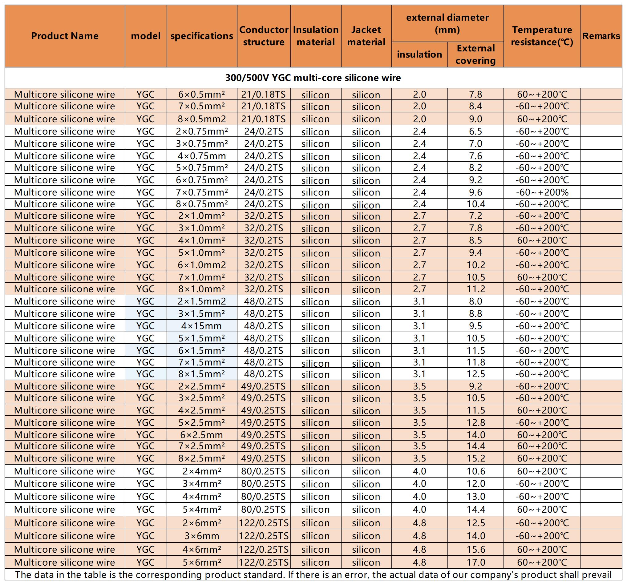 ◆ Color: black (other colors can be customized) ◆ Outer quilt: silicone rubber ◆ rated voltage: 300 / 500V ◆ Flame retardant: VW-1